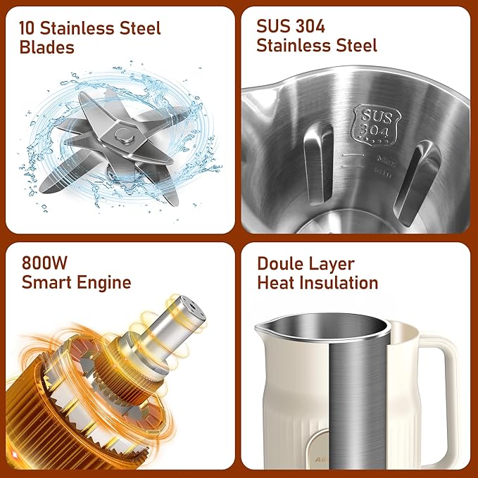 With a generous 1000 ml (approx. 35 oz) capacity, this nut milk maker is perfect for families, meal prepping, or hosting guests. You can make several servings at once without having to repeat cycles.