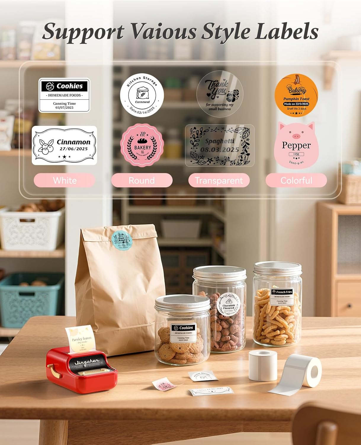 Use it to create adorable gift tags, custom clothing labels, spice jar stickers, price tags, or office file labels in seconds. Just connect your smartphone via Bluetooth, open the NIIMBOT app, and start designing from hundreds of free templates. No ink, no ribbons, no hassle — just crisp, clear thermal printing that looks professional on every surface.