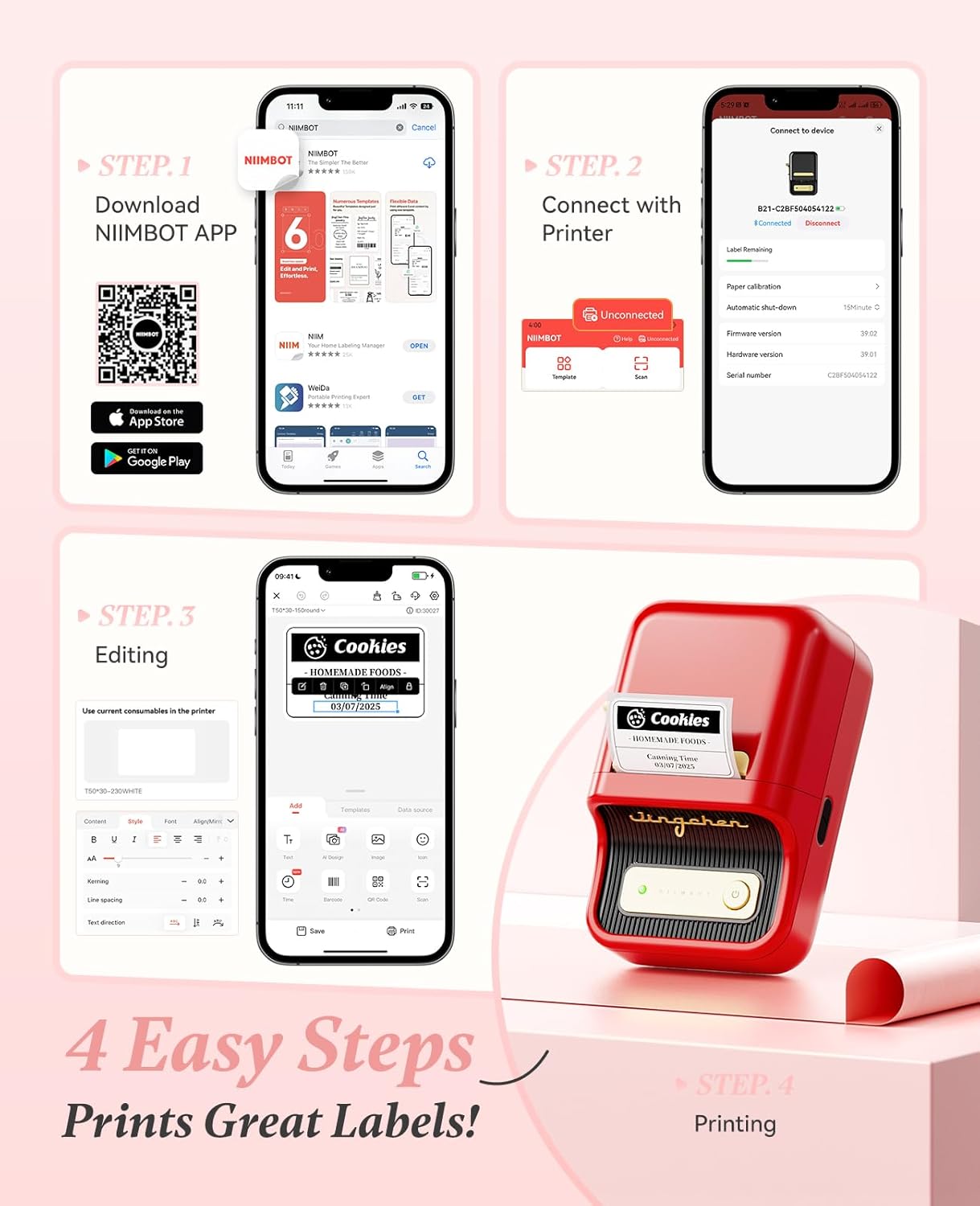 1 × NIIMBOT B21 Bluetooth Label Printer (Red)